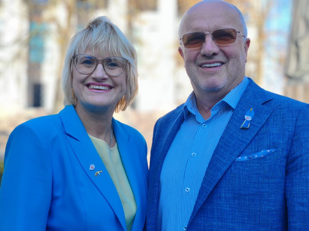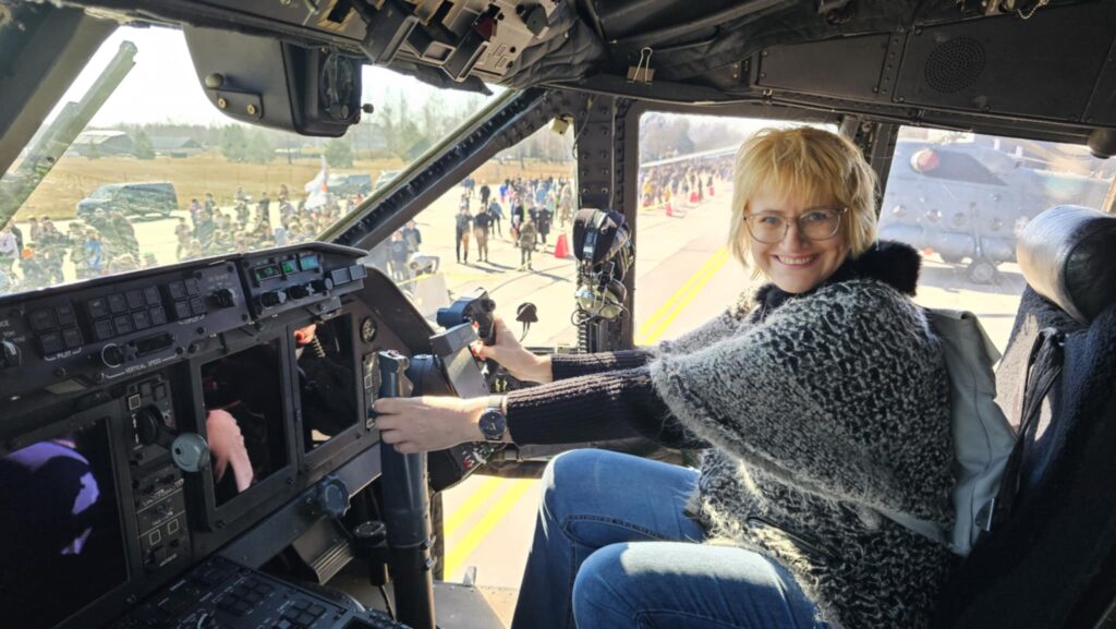 Roma Janušonienė su Lietuvos trispalve ant skruosto
